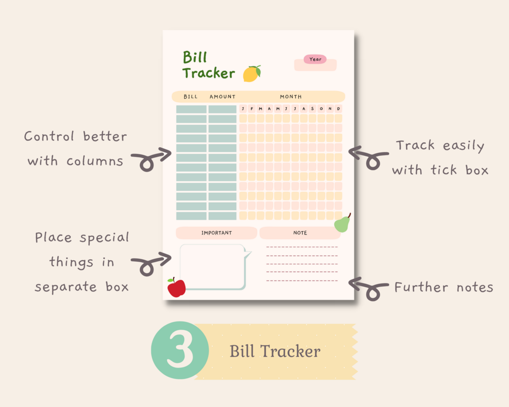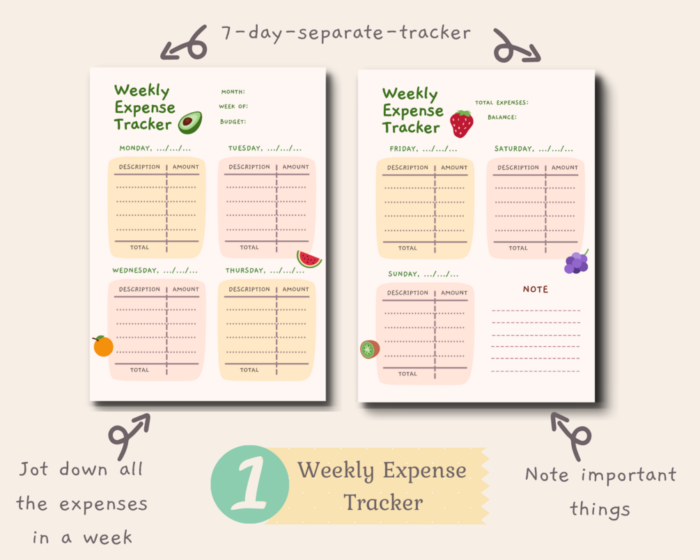 Printable Canva pastel colorful fruity budget planner bundle. This helps you keep track your budget easily, control your expenses weekly and monthly, be on top of bill paid check and save money for your dreams ;)
